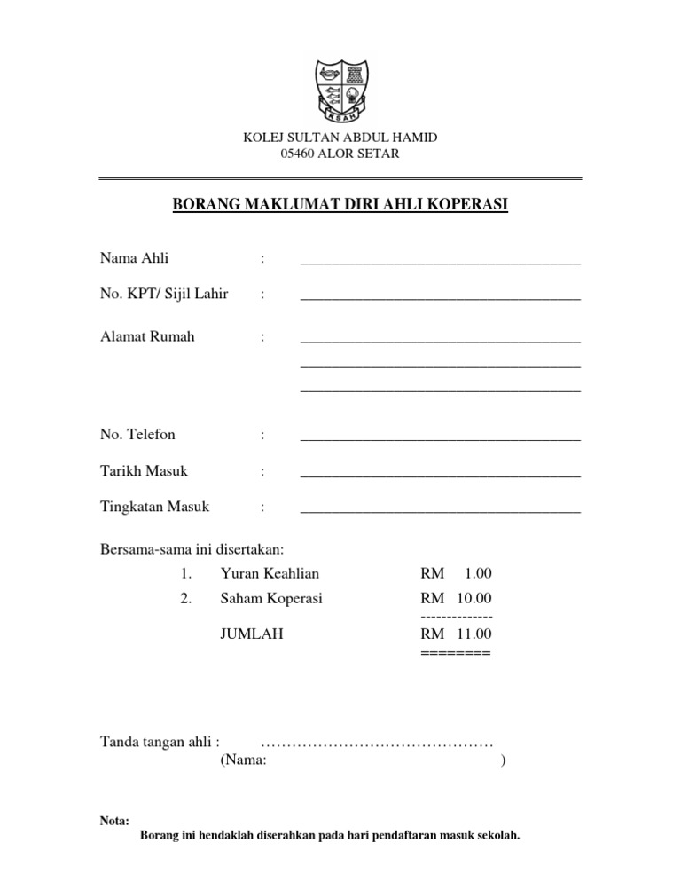 Borang Maklumat Diri Ahli Koperasi Pdf